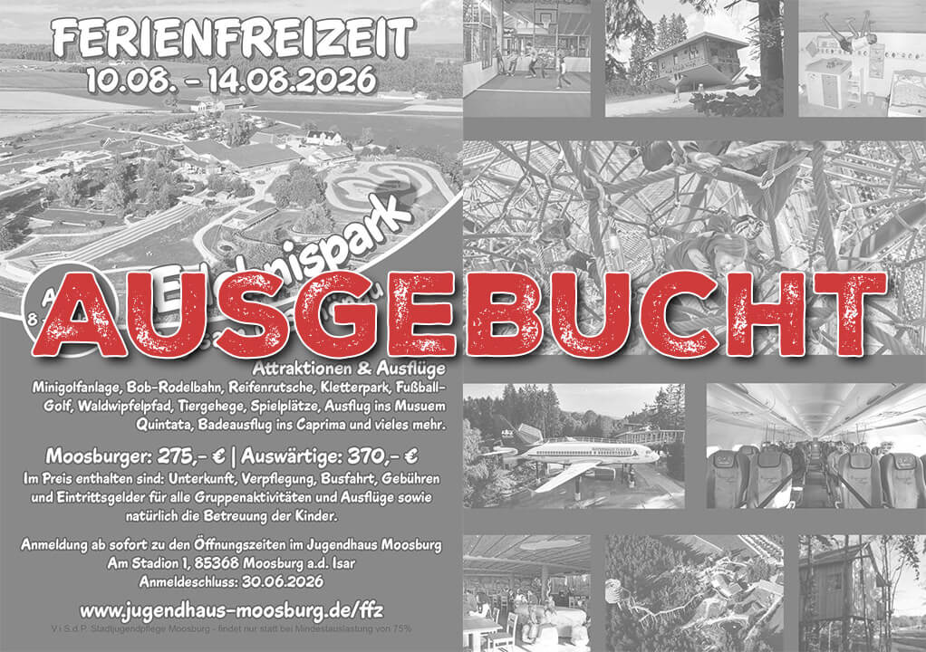 Am 19. November 2025 organisiert die Stadtjugendpflege Moosburg einen Ausflug zum Letz Fetz in Neufahrn für Kinder ab der 1. Klasse. Die Teilnahmegebühr beträgt 25 Euro. Darin enthalten sind sind die Anfahrt, der Eintritt und das Mittagessen. Die Anmeldung erfolgt während der Öffnungszeiten im Jugendhaus in bar und ist bis zum 7. November möglich.